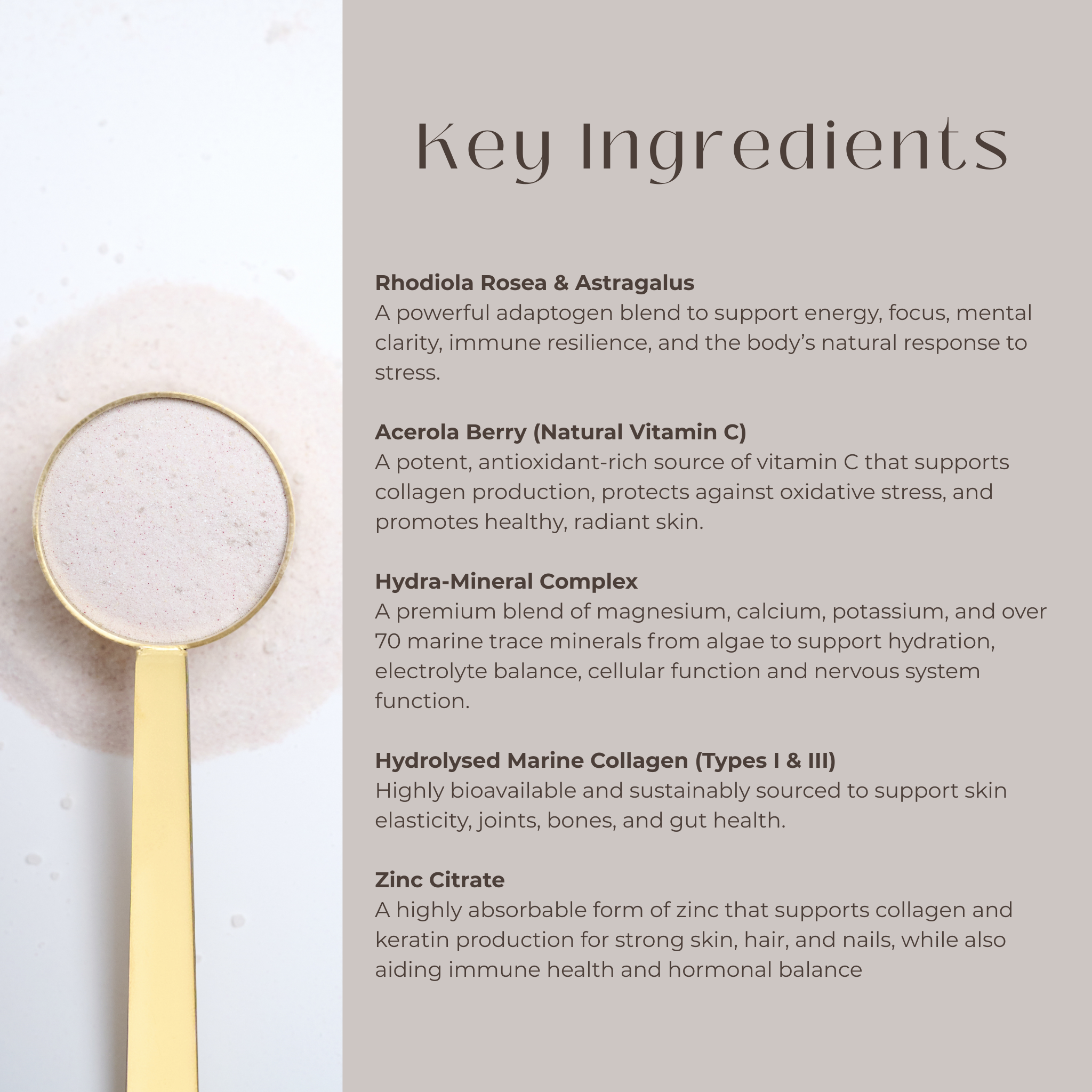 Powered by marine collagen, adaptogens, vitamins, minerals and prebiotics.